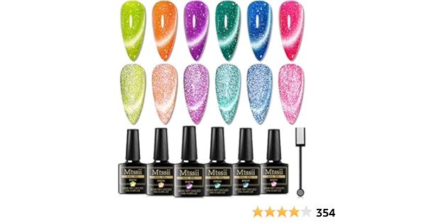 Neon Reflective Glitter Cat Eye Gel Nail Polish 6 Colors Sparkle Diamond Magnetic Gel Polish Shiny Glitter Blue Purple Pink Nail Polish Soak Off Gel Polish With Magnetic Stick Buy Online At Best Price In Uae Amazon Ae