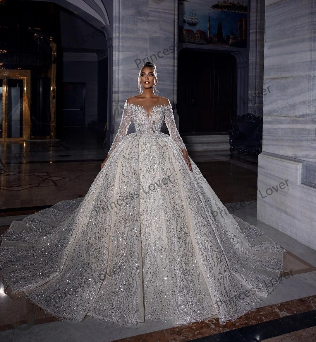Long Sleeve Glitter Princess Wedding Dress Elegant Princess Etsy Romania Ball Gowns Wedding Sparkly Wedding Dress Royal Wedding Dress