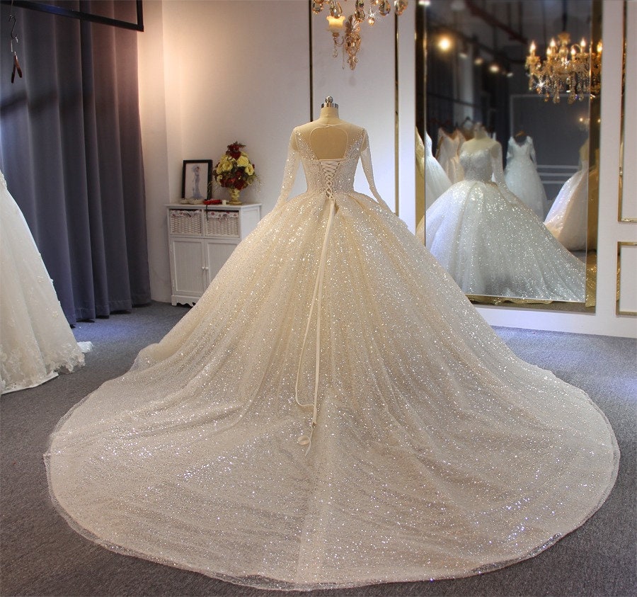 Glitter Wedding Gown Sparkle Wedding Dress Ballgown Wedding Dress Long Sleeve Wedding Dress Etsy De